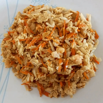 Telur orak arik dicampur dengan rebusan wortel dan kol.